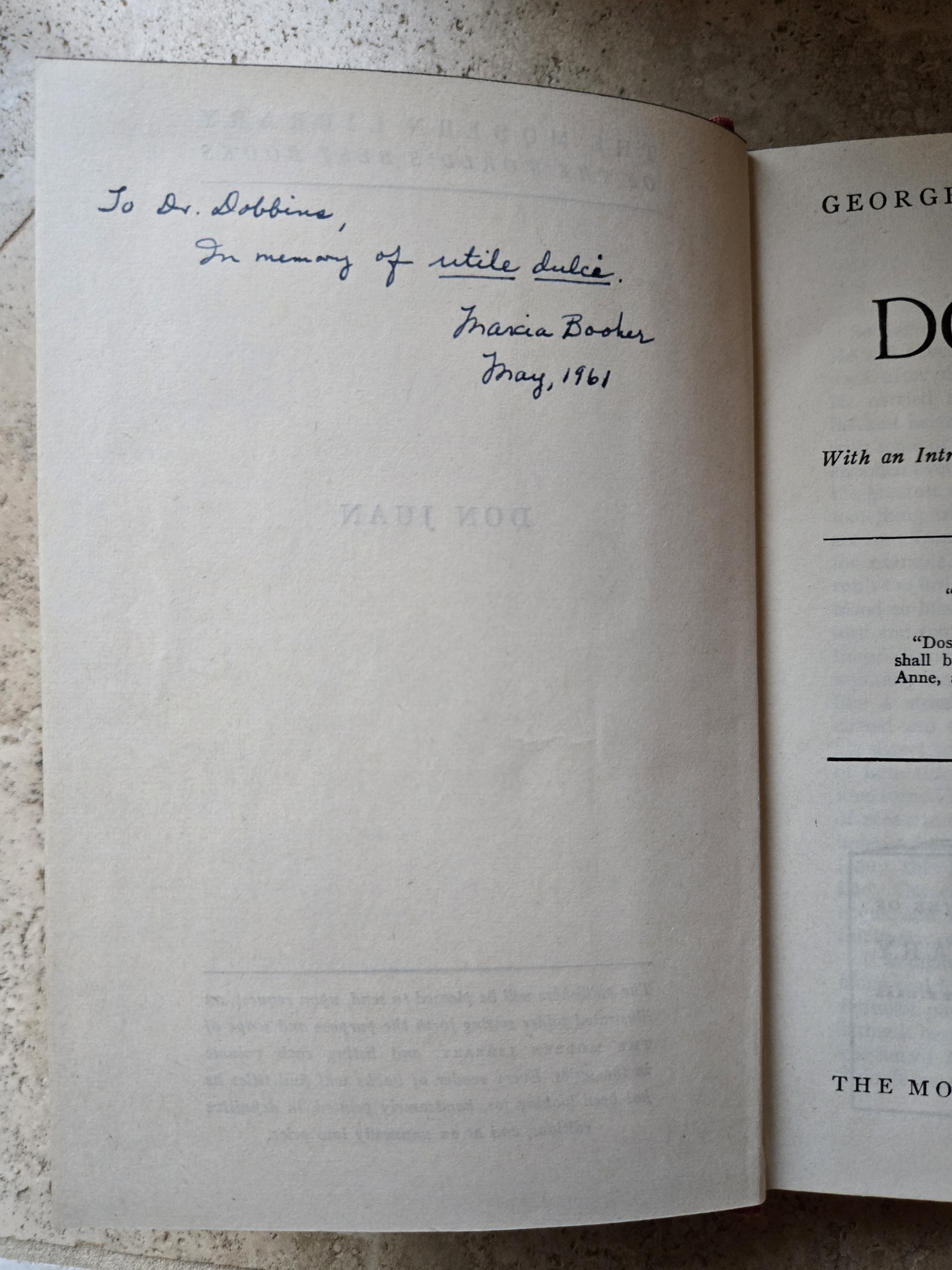 To Dr. Dobbins, In memory of utile dulci. Marcia Booker May, 1961